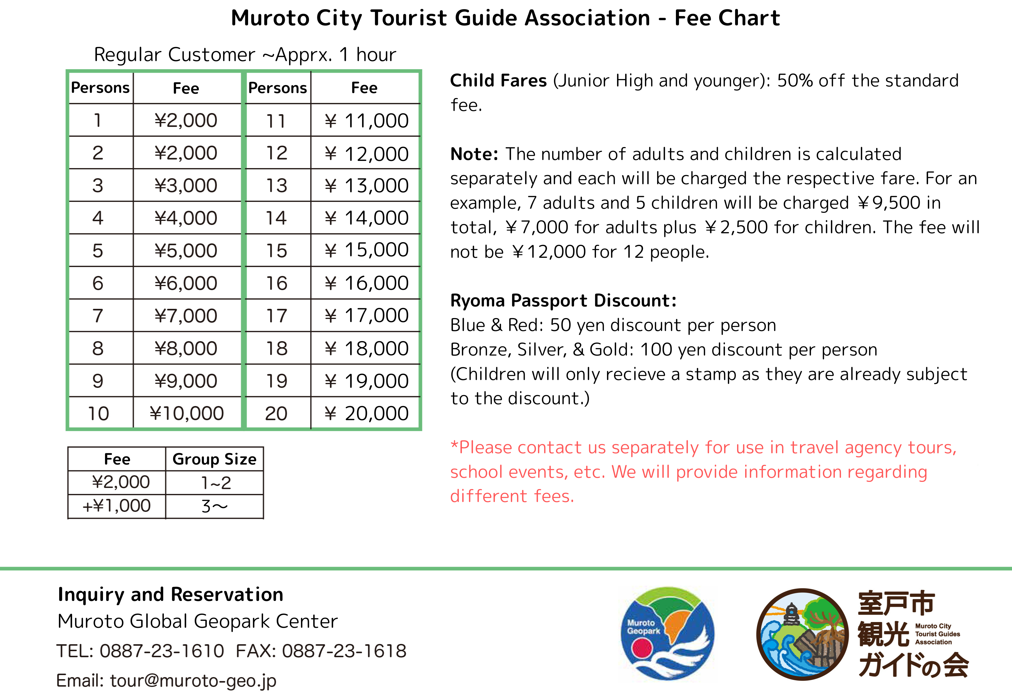For detailed pricing information, please refer to Guide Fee Table PDF .