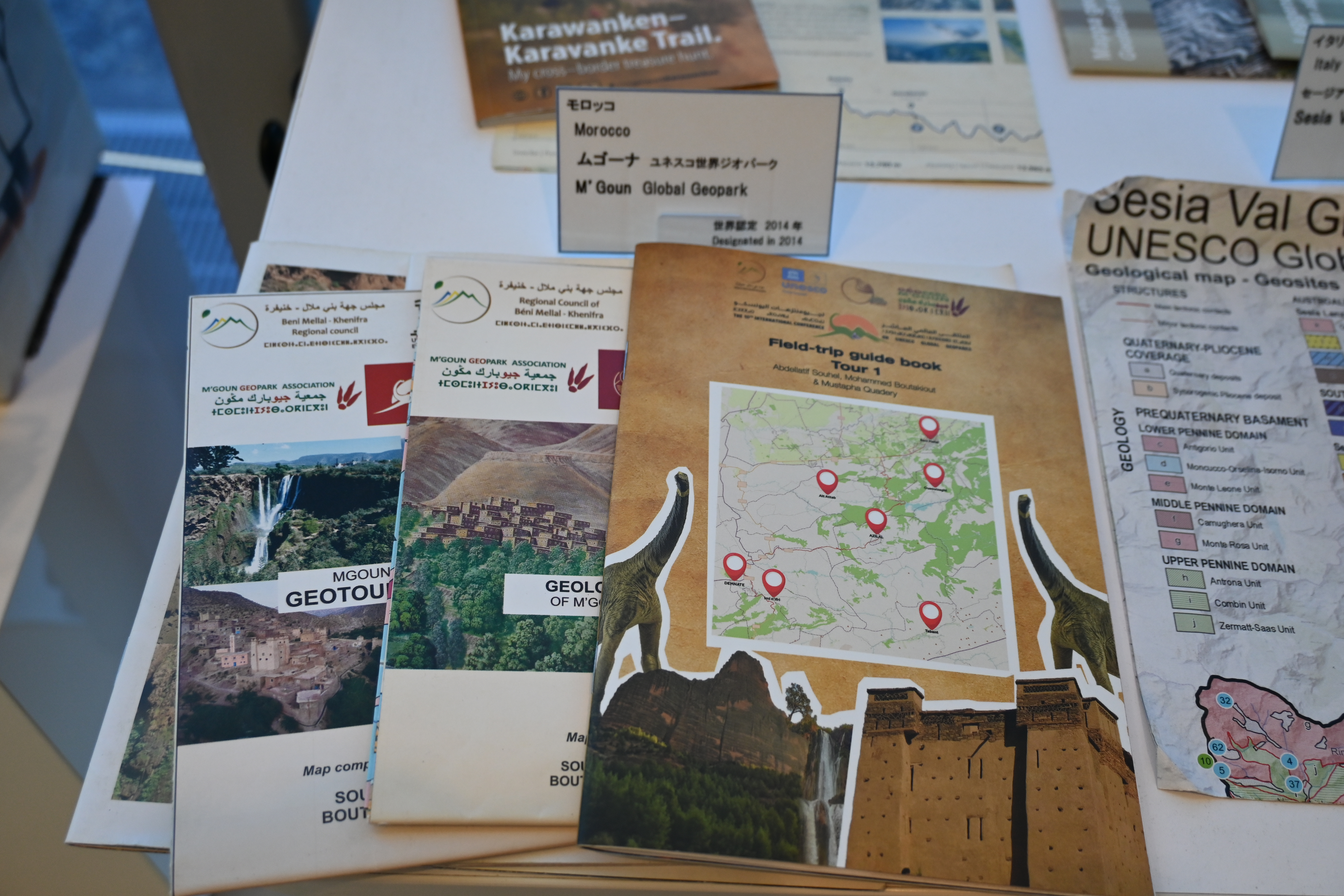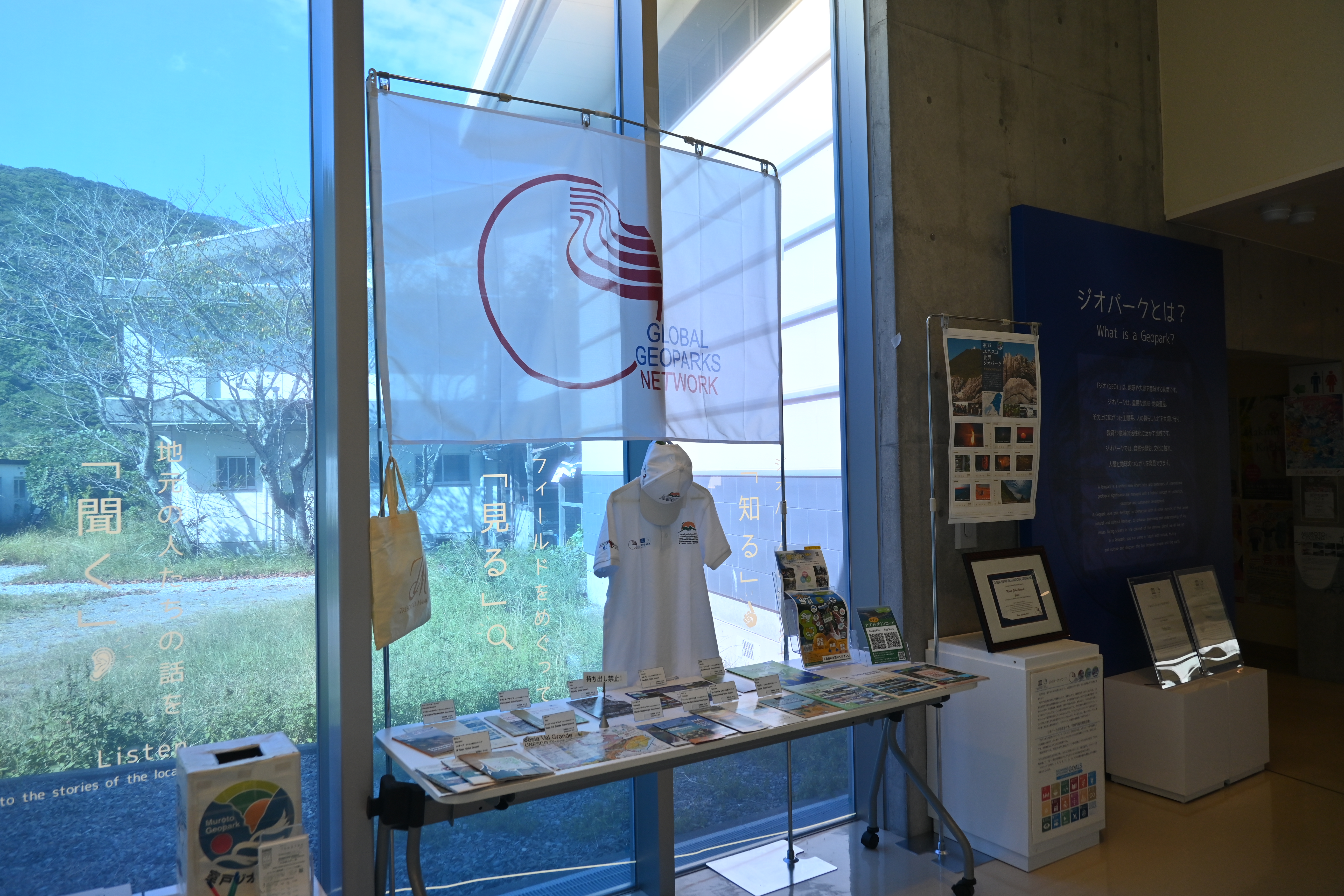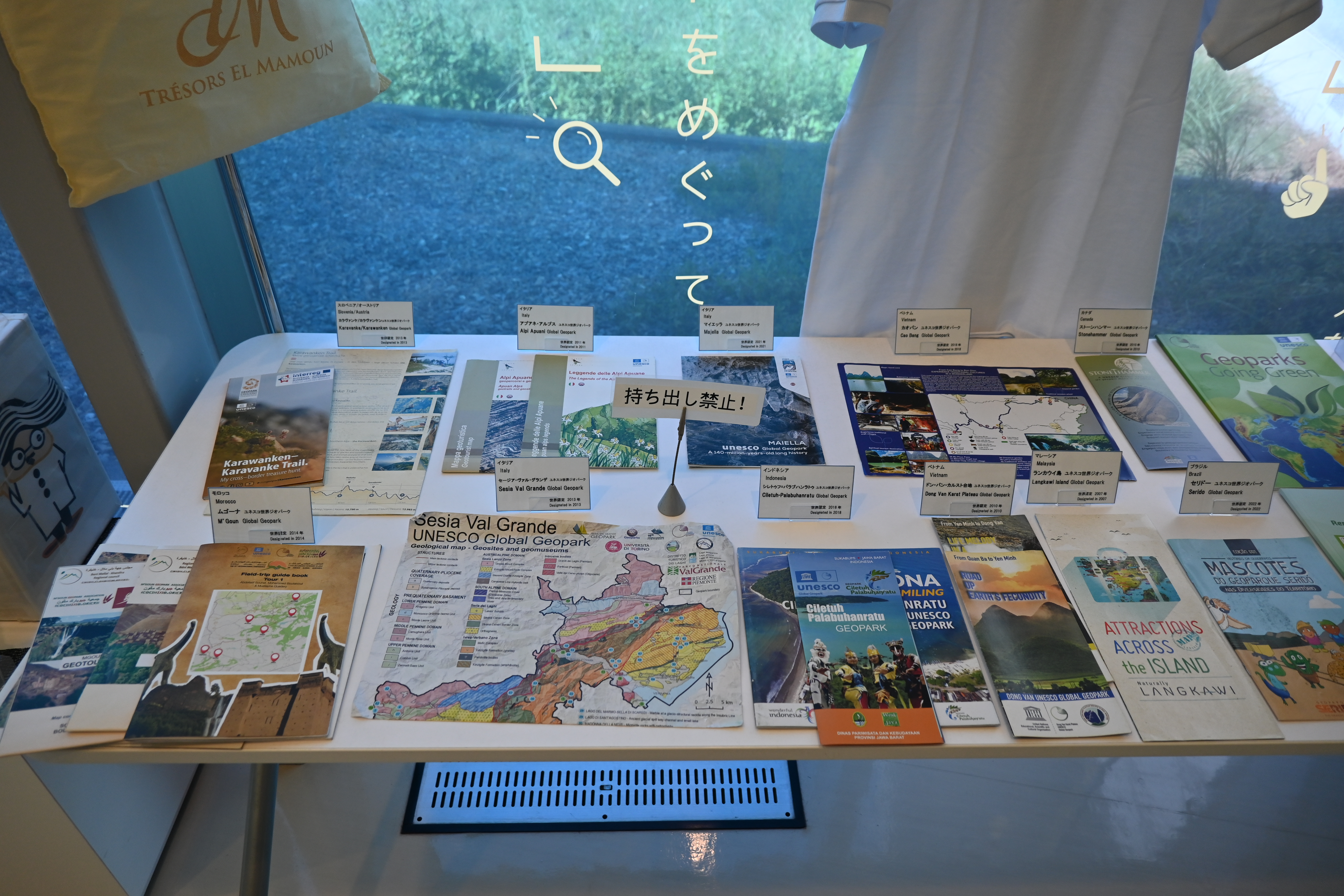 現在、室戸世界ジオパークセンターでは各国のジオパークパンフレットが展示中です。