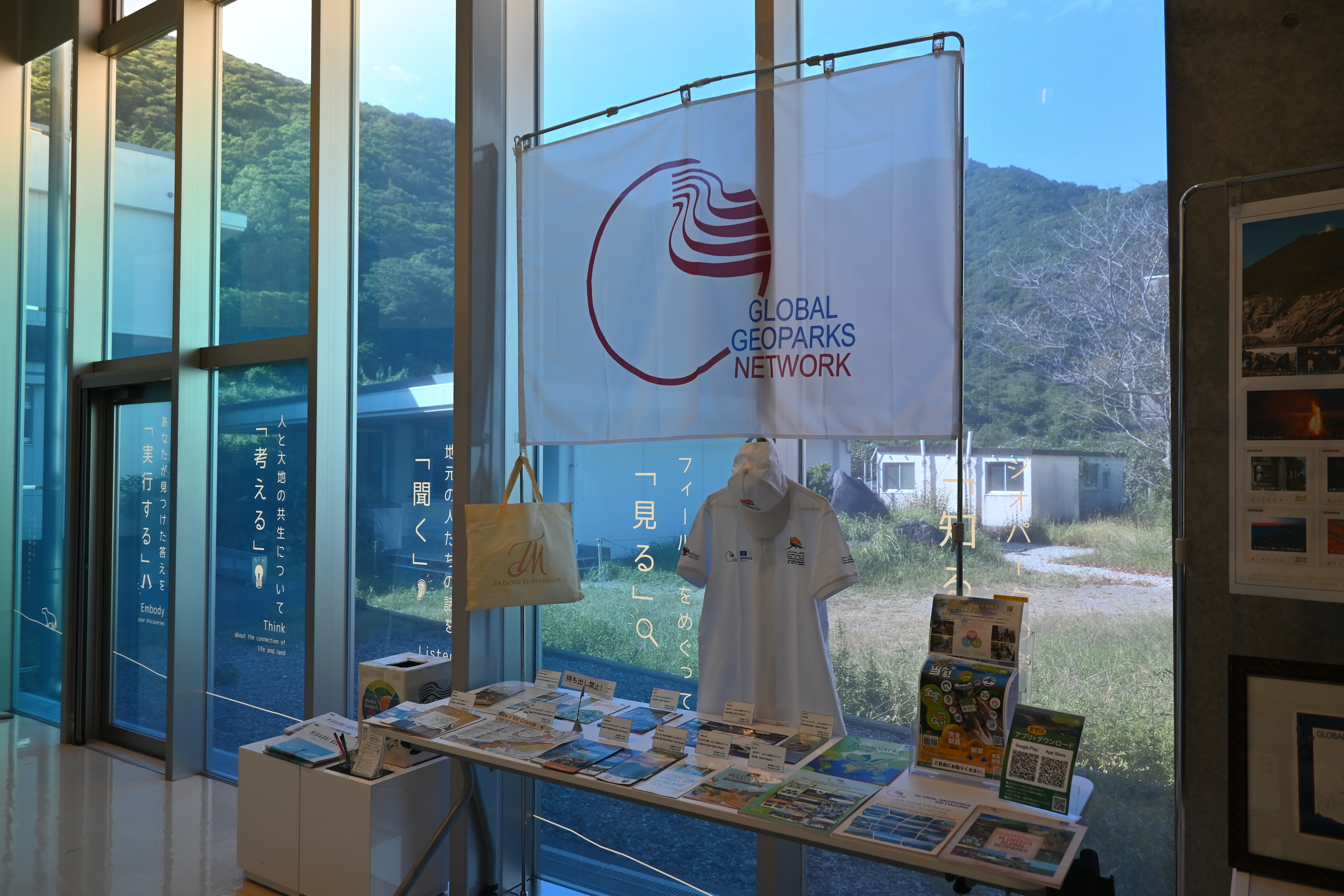 現在、室戸世界ジオパークセンターでは各国のジオパークパンフレットが展示中です。